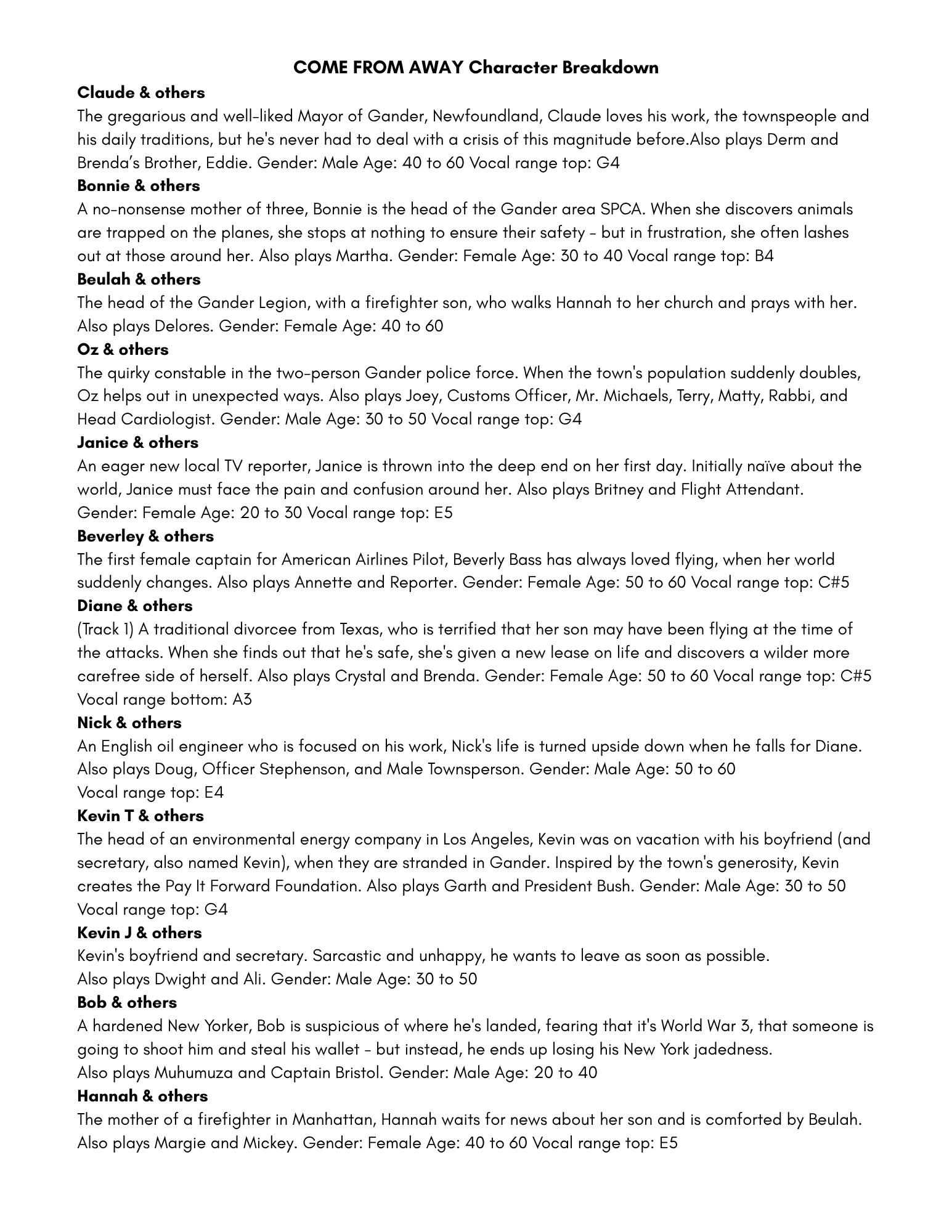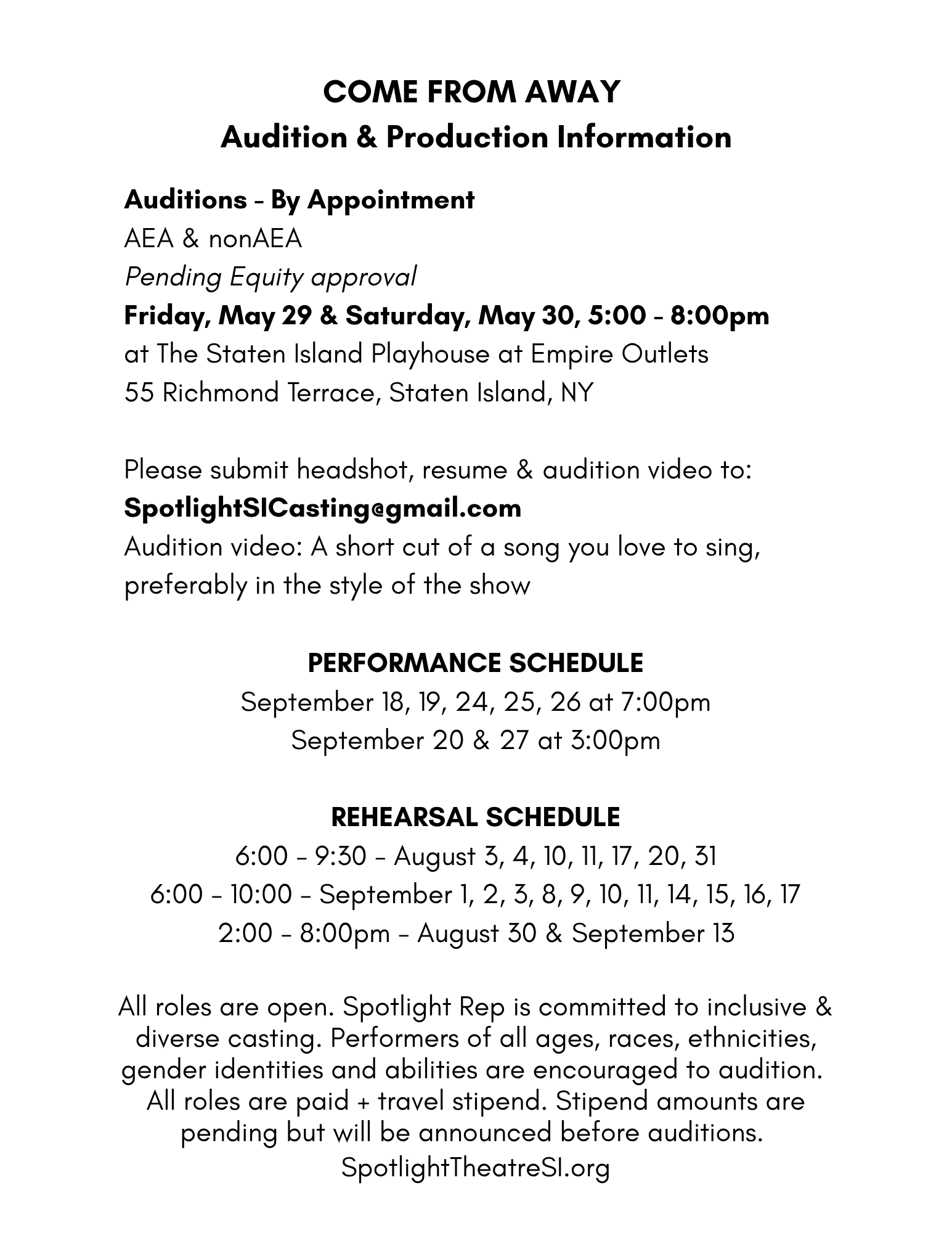 Come From Away - Audition & Production Information